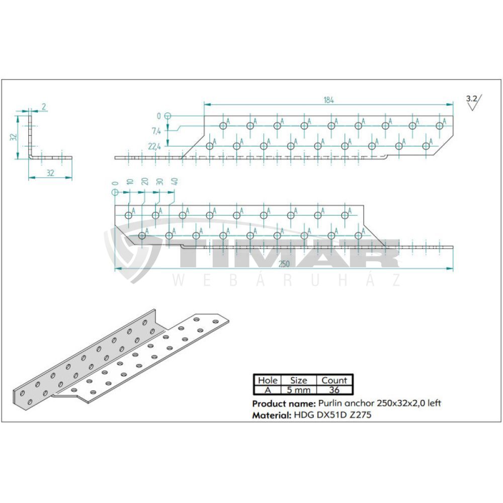 Faösszekötő szarufa rögzítő idom 35x250x35mm Baloldali