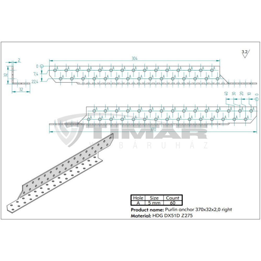 Faösszekötő szarufa rögzítő idom 35x370x35mm Jobboldali