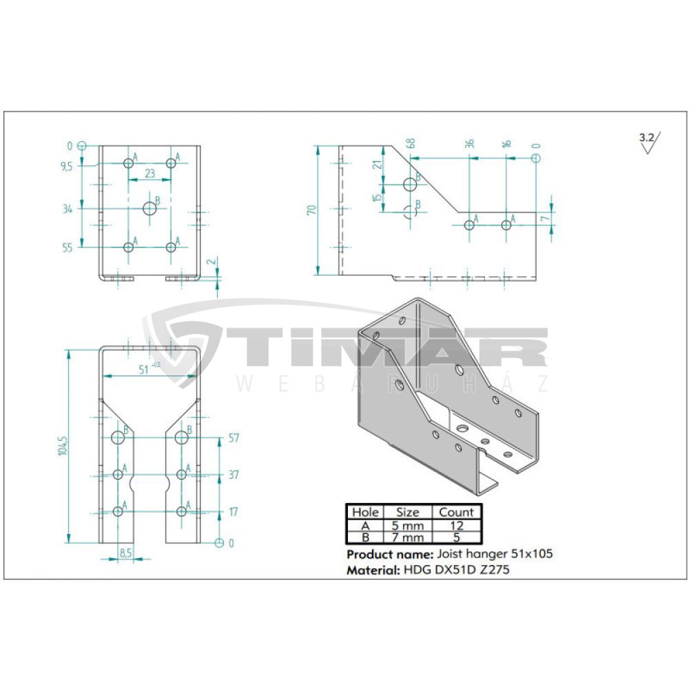 Gerendapapucs belső rögzítéssel 50x105x2,0mm