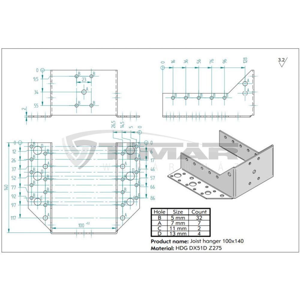 Gerendapapucs külső rögzítéssel 100x140x2,0mm